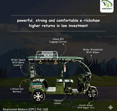 Roansome Motors (OPC) Private Limited is an emerging Indian electric vehicle company that specializes in the manufacturing and distribution of E-Rickshaws & E-Cart,s.